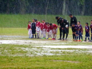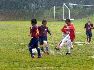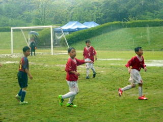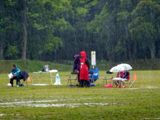 大雨の中で1勝1敗と健闘しましたが、残念ながら県大会出場はなりませんでした。