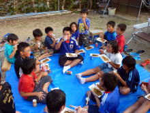夕食は宿泊の民宿においてバーベキューが行われました。 みんな焼肉おいしかったかな!