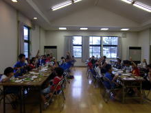 夕食は公民館においてバーベキューが行われました。 みんな焼肉おいしかったかな!