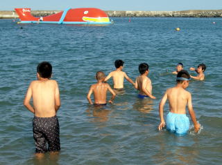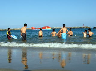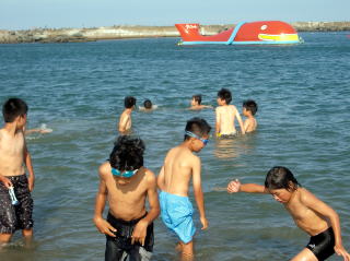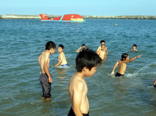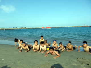 1日目が終了し、みんなで海水浴へ行きました。(なんと宿泊施設の目の前が海でした)