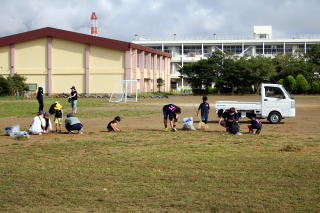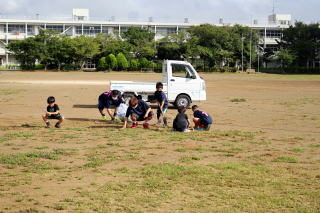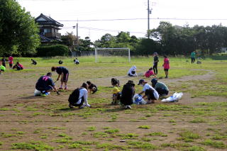 7月31日の夏合宿開催日においていつもお世話になっている軽野東小グラウンドで草刈り等の奉仕活動を行いました。