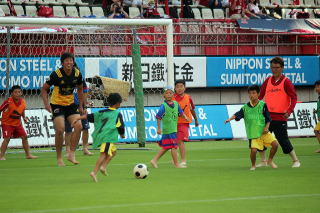 7月22日鹿島アントラーズホームゲームのイベントとして行われた、ホームタウンデイズ 「神栖の日」では、前座として神栖市少年団による裸足でサッカーが行われました。