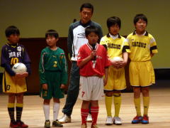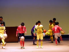 壇上で得意のリフティングを披露