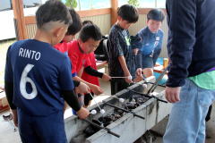 スキンシップサッカー交流終了後は会場を移動して昼食バーべキュー交流が行われました。 コーチたちが中心となり企画して頂いたバーベキユー交流では子供達の積極的な 協力もあり、無事に楽しく交流出来ました。 新しい仲間が増えるといいですね! お疲れ様でした。