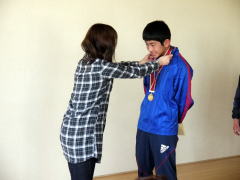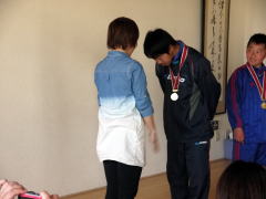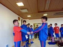 6年生キャプテンから次年度キャプテンへ恒例のキャプテンマーク授与式が行われた
